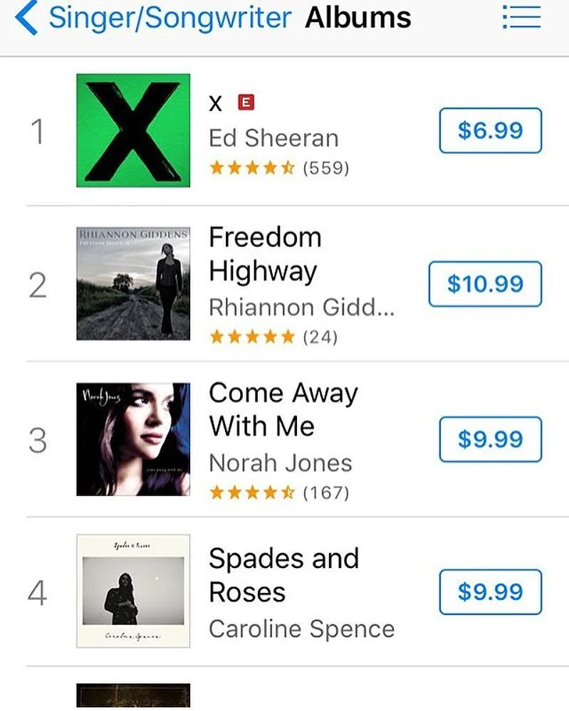 "Spades & Roses" hits #4 on iTunes Singer-Songwriter Chart!